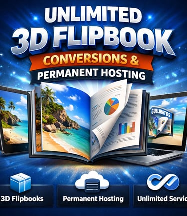 Turn any static PDF or Word document into a stunning 3D animated flipbook! Sign up now to get an exciting 3-day free trial that comes along with unlimited uploads and unlimited conversions. If you happen to only have one project, no problem at all! We have a very affordable rate of just $10 per upload and transformation. This service is incredibly easy to use, designed to enhance your presentations and engage your audience in a dynamic way. Transform your documents into interactive experiences today!